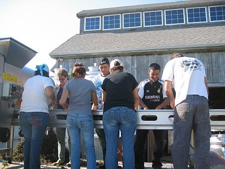 While sorting we had a wonderful time trying to combat the yellow jackets that were buzzing around us. I was alot of fun swatting a bee on the back of your neck with a hand soaked in grape juice.