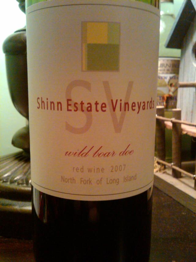 Shinn Estate Vineyards 2007 Wild Boar Doe ($30), is a play on words, Wild Bordeaux. In order for a wine to carry a Bordeaux name it must come from Bordeaux. It must also contain in any percentage the following varieties, Cabernet Sauvignon, Cabernet Franc, Merlot, Petit Verdot and Malbec. Year after year the percentage may change, but year after year it brings consistency. This year it is comprised of 40 % merlot, 23 % cabernet sauvignon, 17 % malbec, 15 % petit verdot and 5 % cabernet franc. There is no wild boar and Venison in this wine.