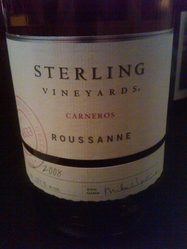 Wine Blogging Wednesday #71 “Rhones Not From The Rhône.” — Sterling Vineyards Carneros 2008 Roussanne