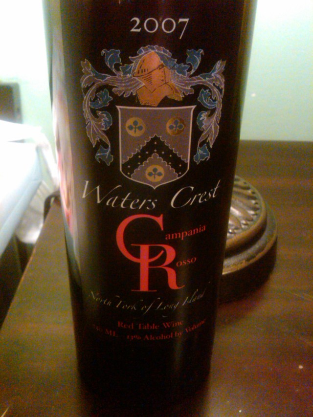 Waters Crest Winery 2007 Campania Rosso ($50) is a limited production wine; only 77 cases of this wine were made. I believe that this is sold out in the tasting room, but you may find it on restaurant wine lists out on the North Fork and NYC.