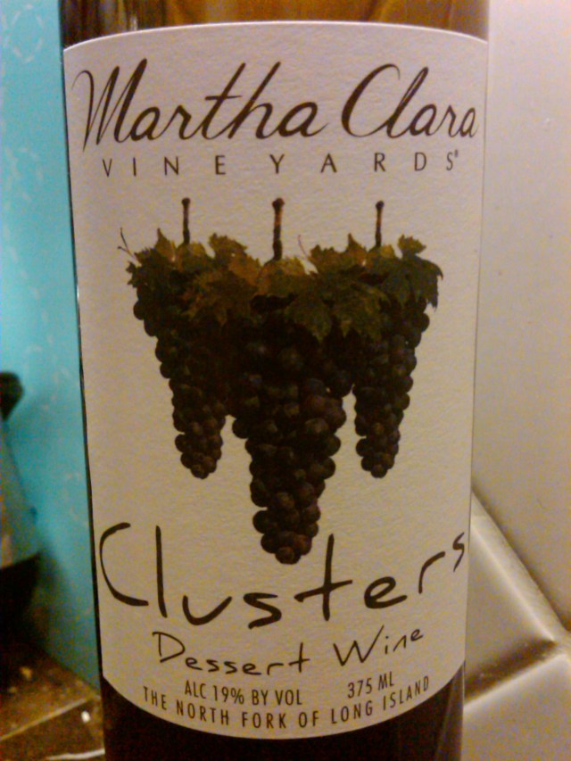 This Martha Clara Vineyards 2007 Clusters ($29) is an perfectly balanced blend of Estate Grown grapes; 34% Merlot, 33%Cabernet Sauvignon, 33% Cabernet Franc. The grapes were hand harvested in November 2007, fermented in stainless steel and aged for 3 years in neutral oak barrels.